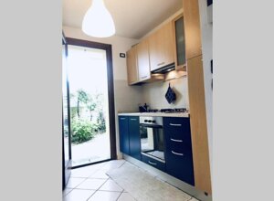 L’appartamento è completamente arredato, in modo da soddisfare ogni comfort, con un giardino privato, dotato di poltroncine da esterno.